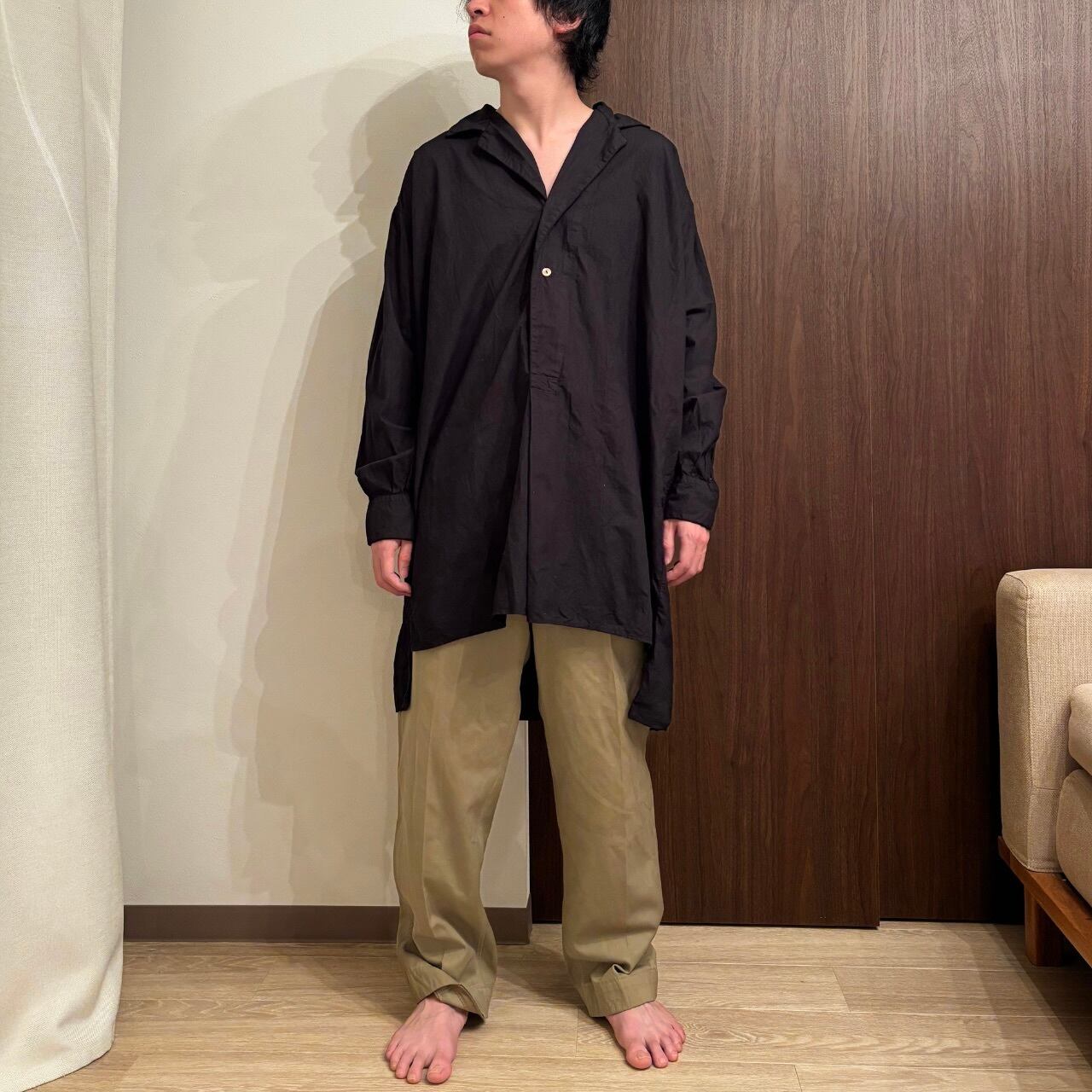 もともとはホワイトだったものが、ブラックに後染めされた一着です。