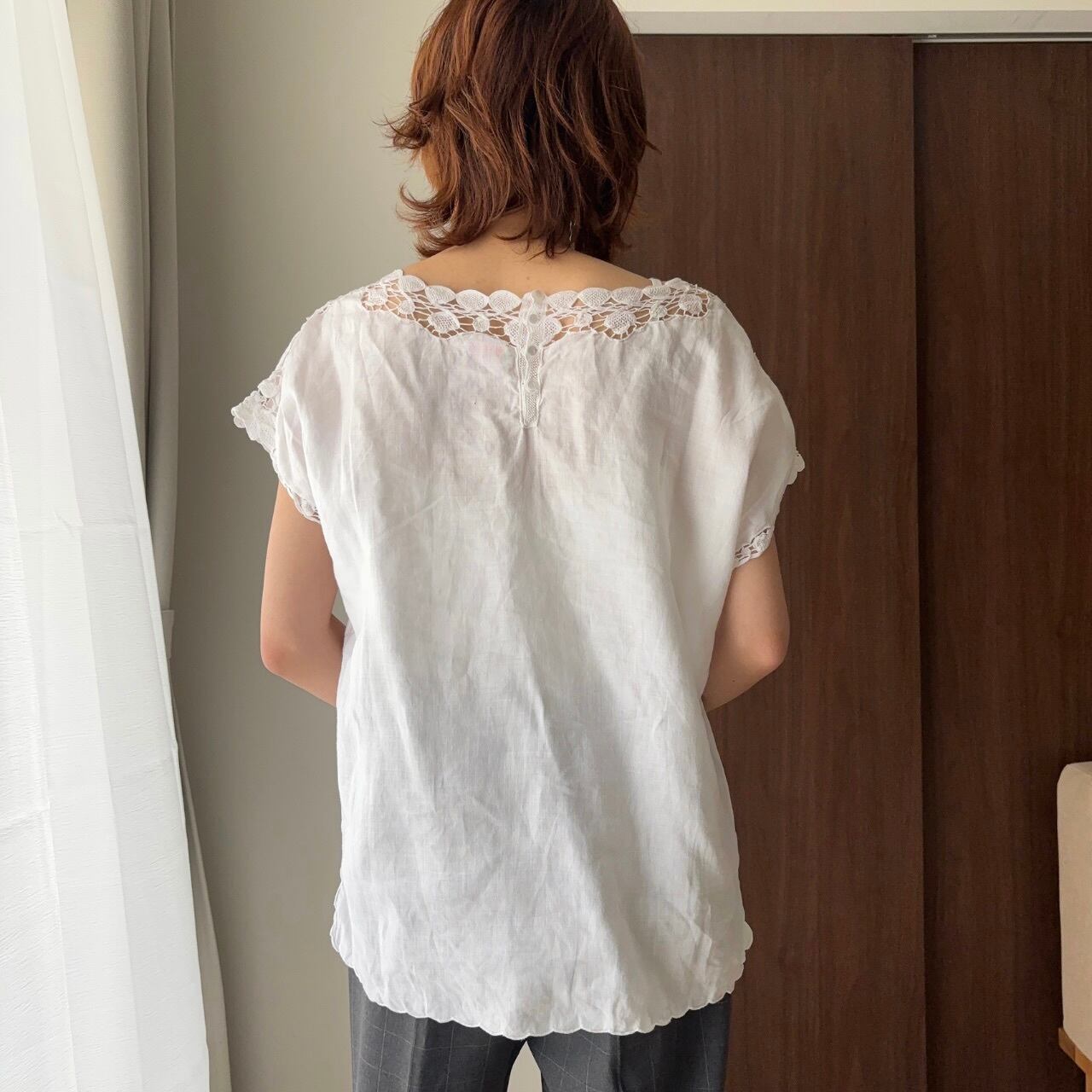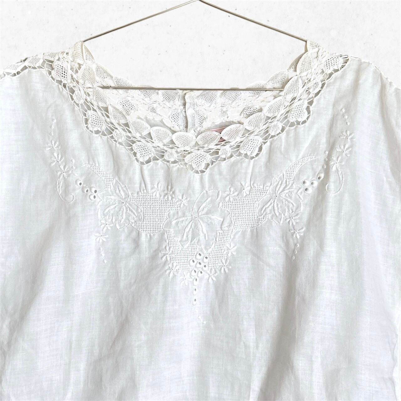 胸元・首元・袖には細やかなレースがあしらわれ、可愛らしさと上品さを兼ね備えています。
