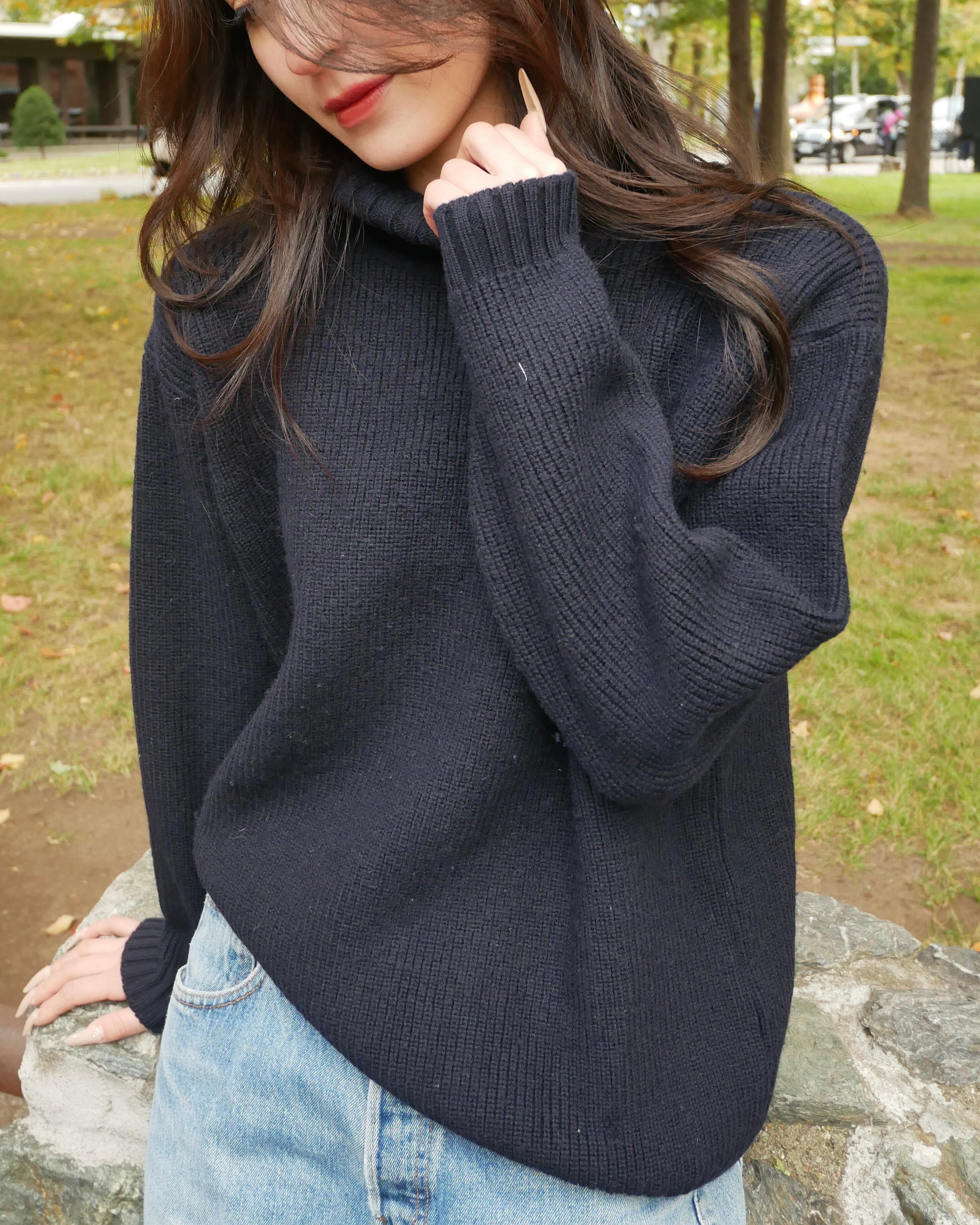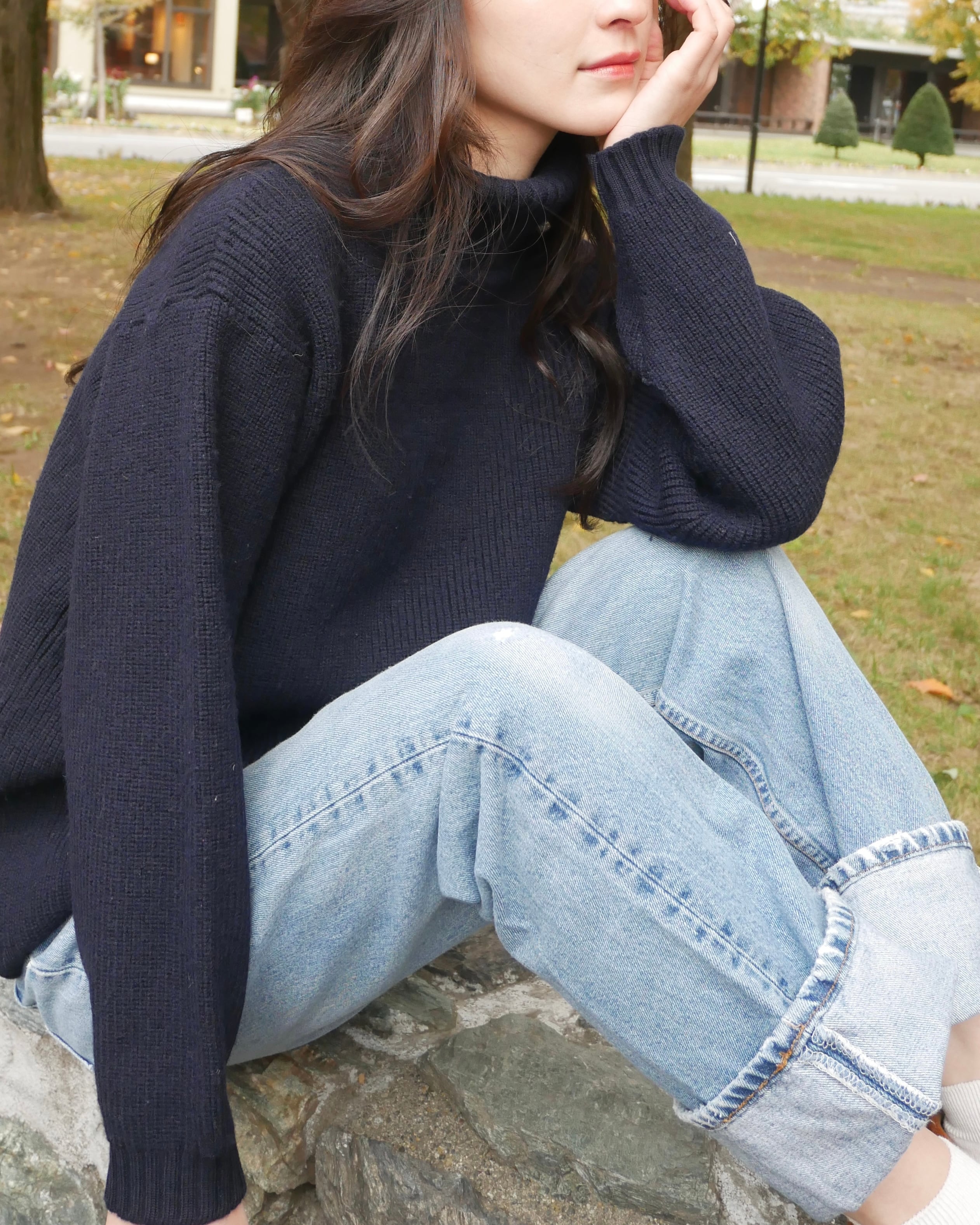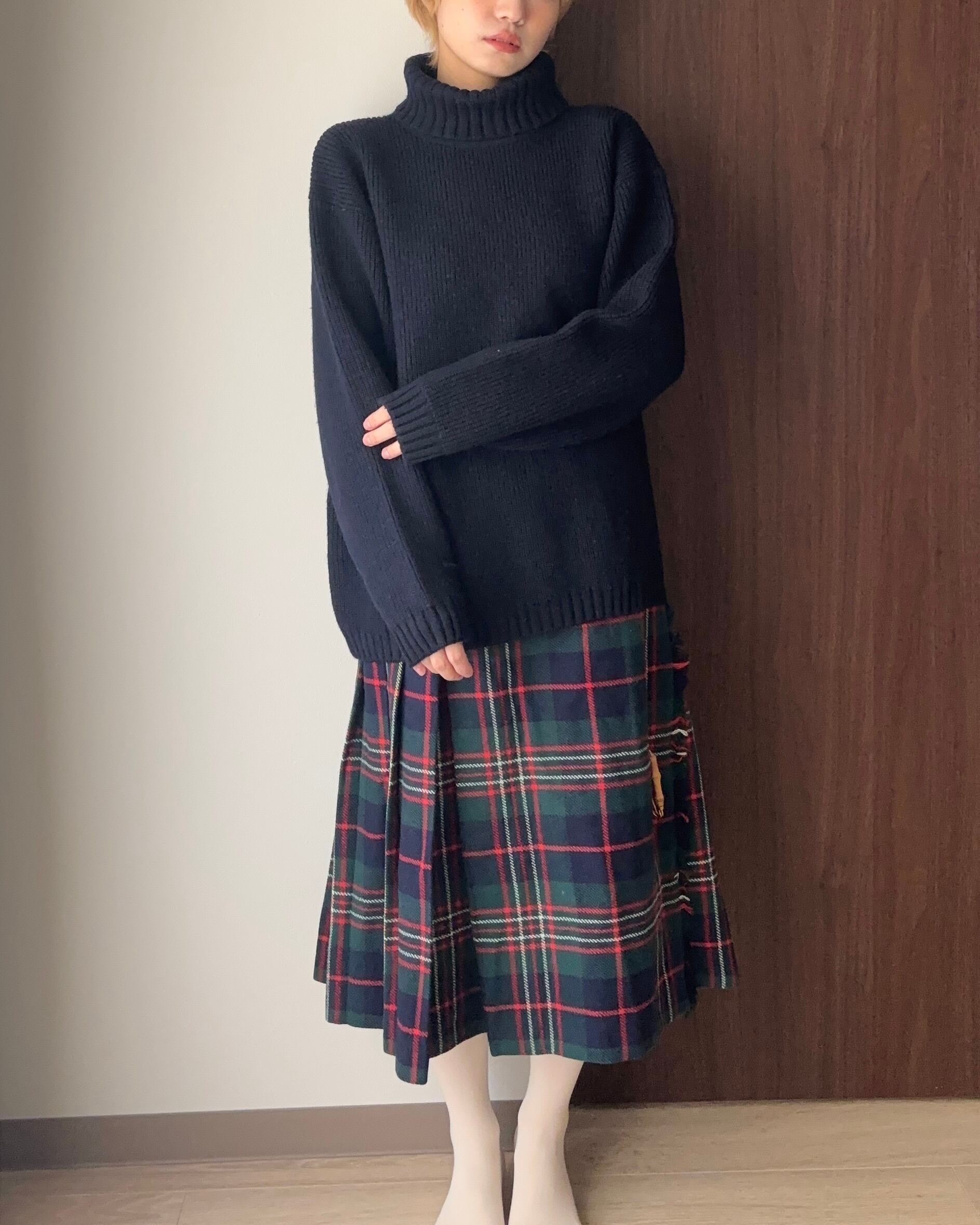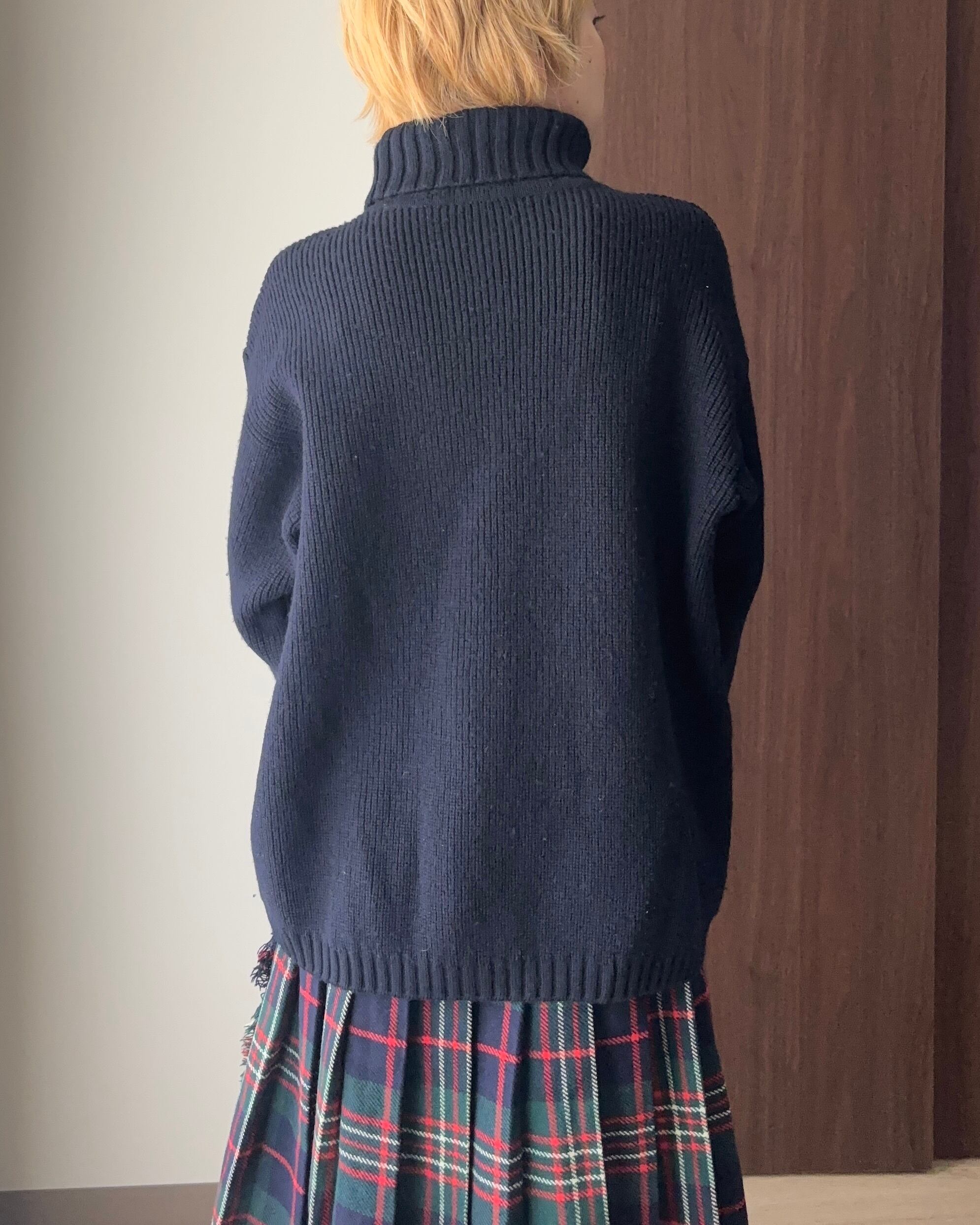 イタリア製のメリノウールハイネックニットは、上質な素材とストンと落ちる美しいシルエットが魅力の一着。