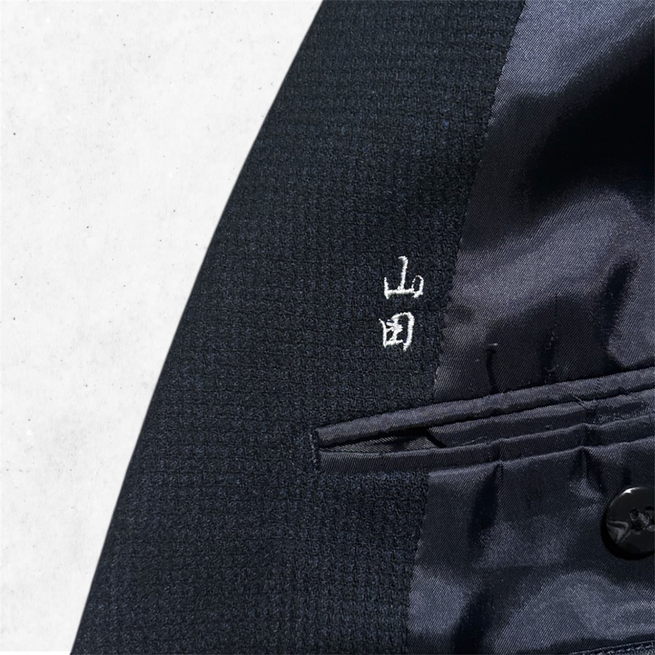 ネイビーベースに見える生地は、よく見るとネイビー×ブラックの細かなチェック柄になっており、さりげないデザイン性が魅力。