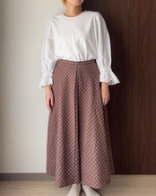 ふんわりとしたニットや、きちんと感のあるブラウスと合わせて、クラシカルなスタイリングを楽しんでほしい一着です。