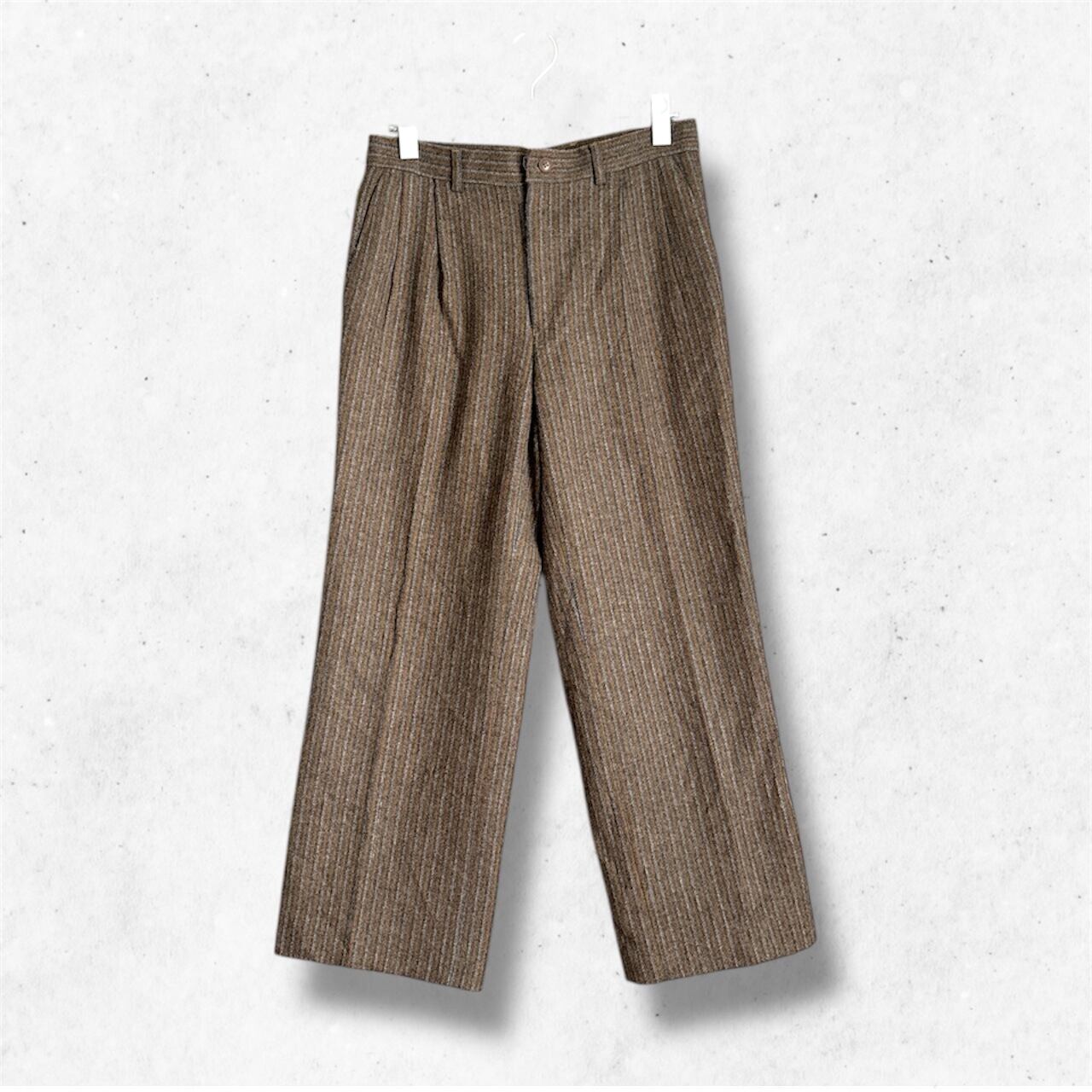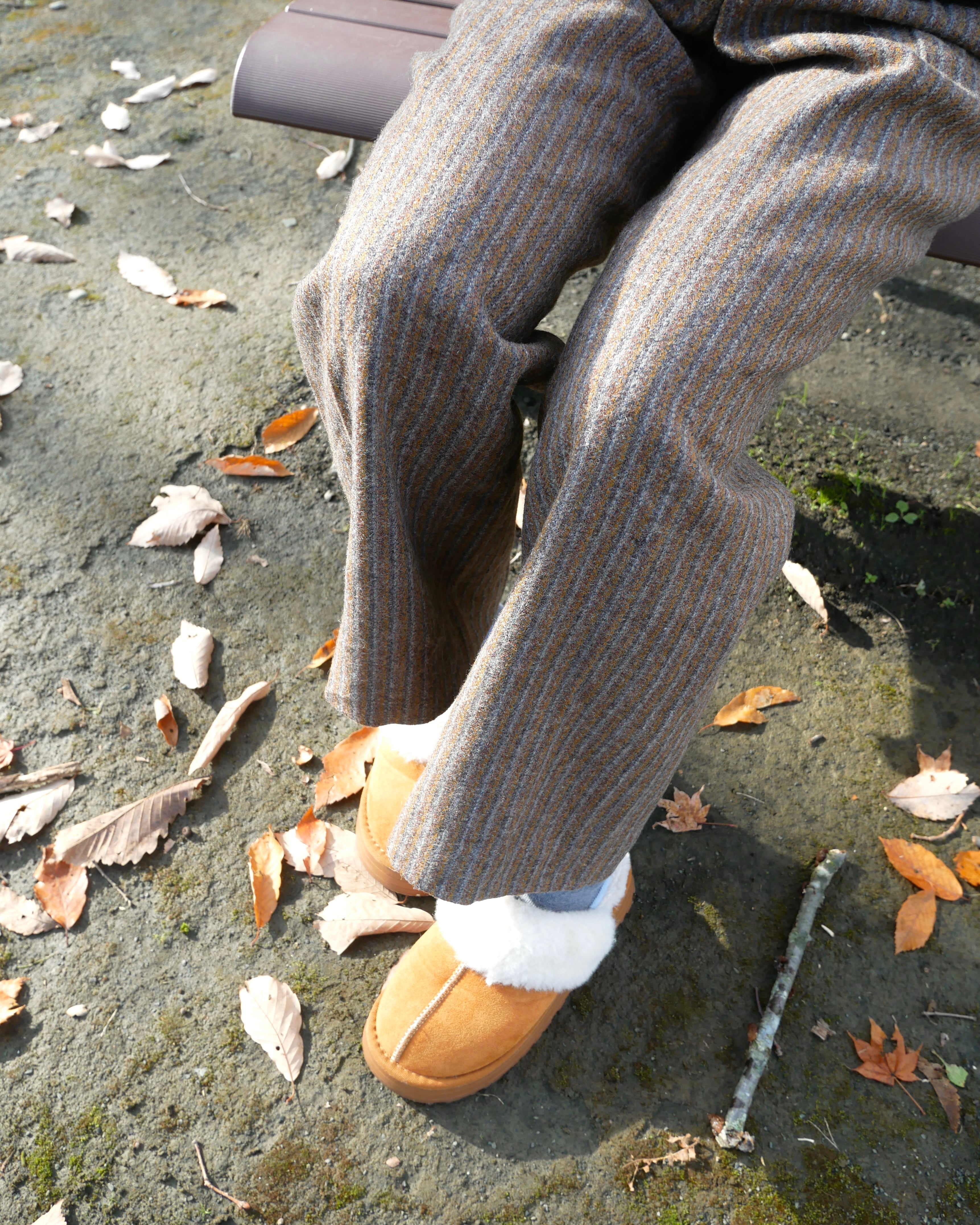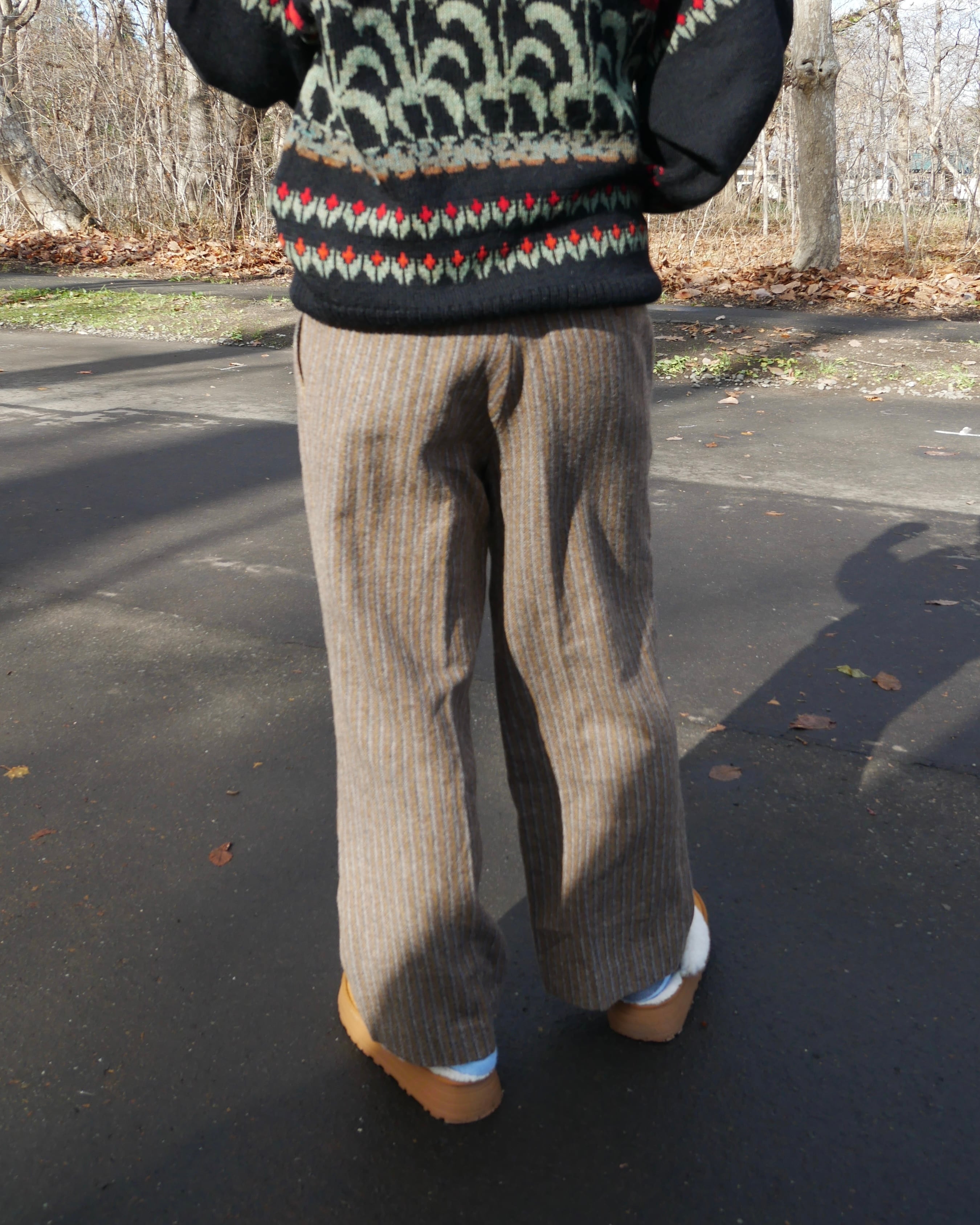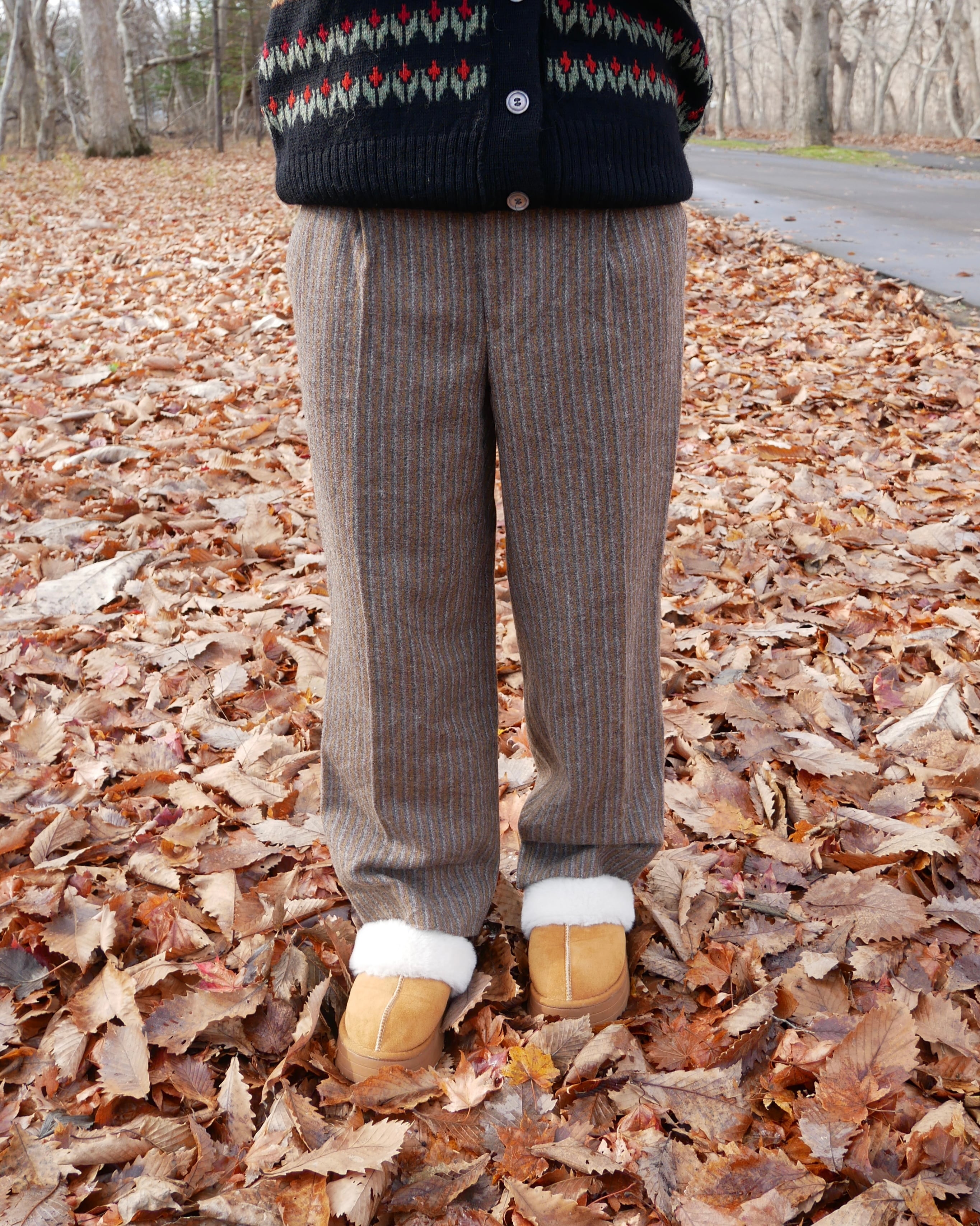 ウールのボーダースラックスは、ストレートラインが美しく際立つ一本。