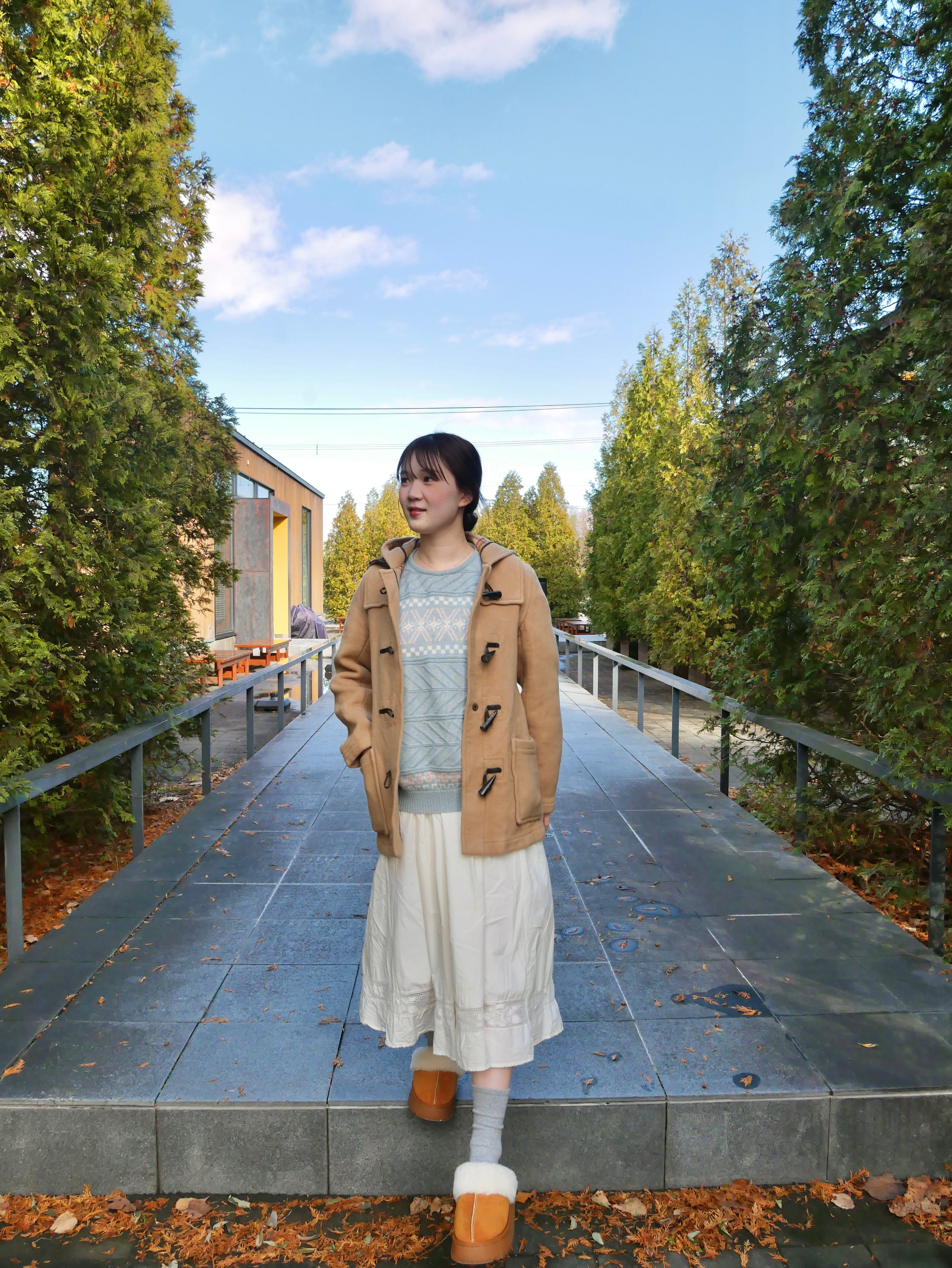 チェックスカートやスウェード生地のパンツと合わせることで、こなれ感のある可愛らしいコーディネートが完成します。
