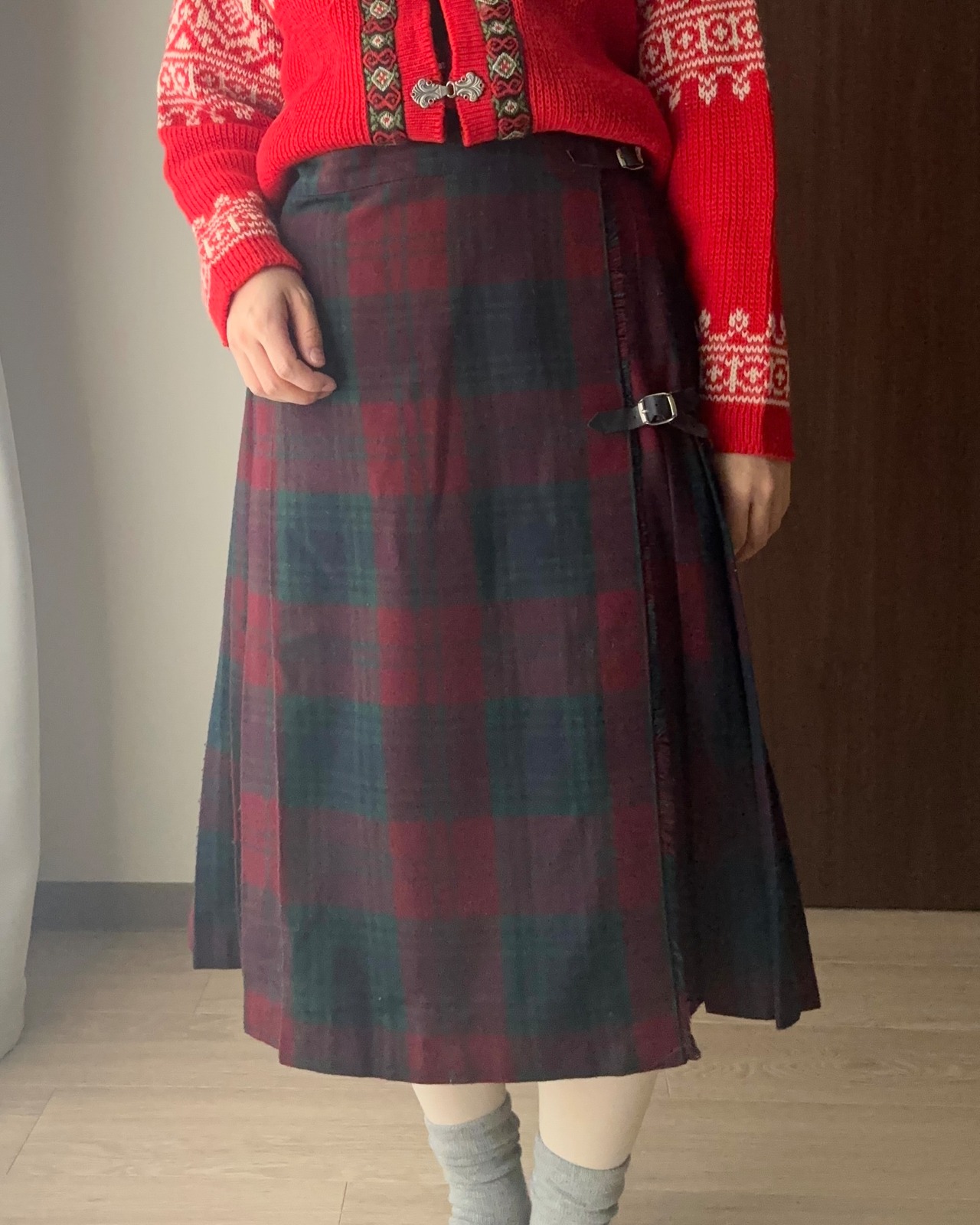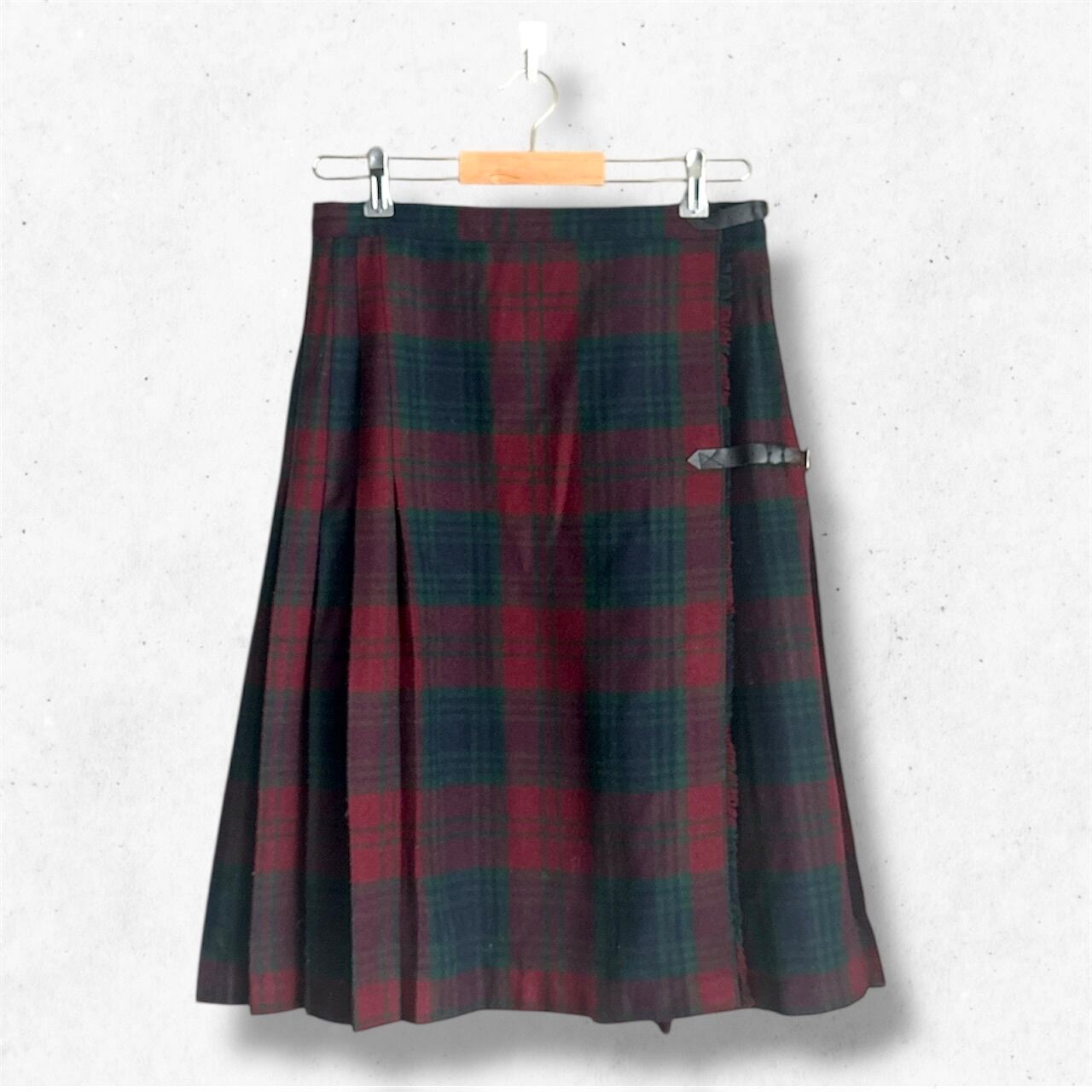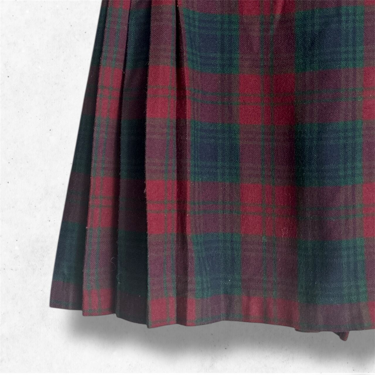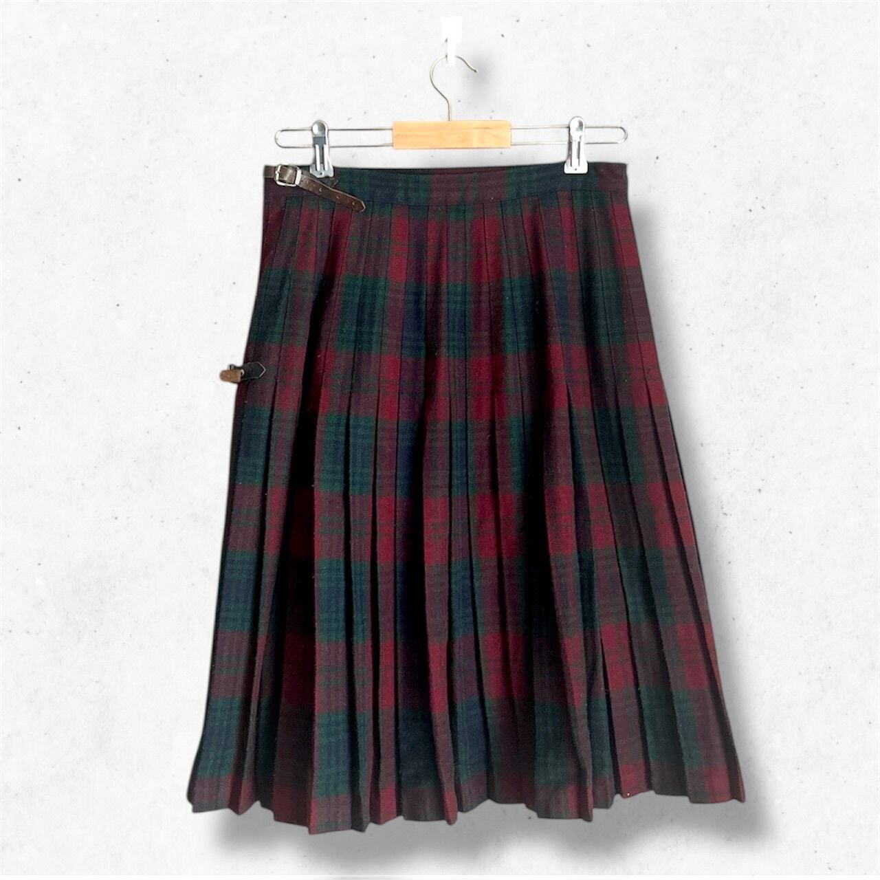 タータンキルトスカートは、深いレッドとグリーンが織りなすシックな色味が魅力の1着。