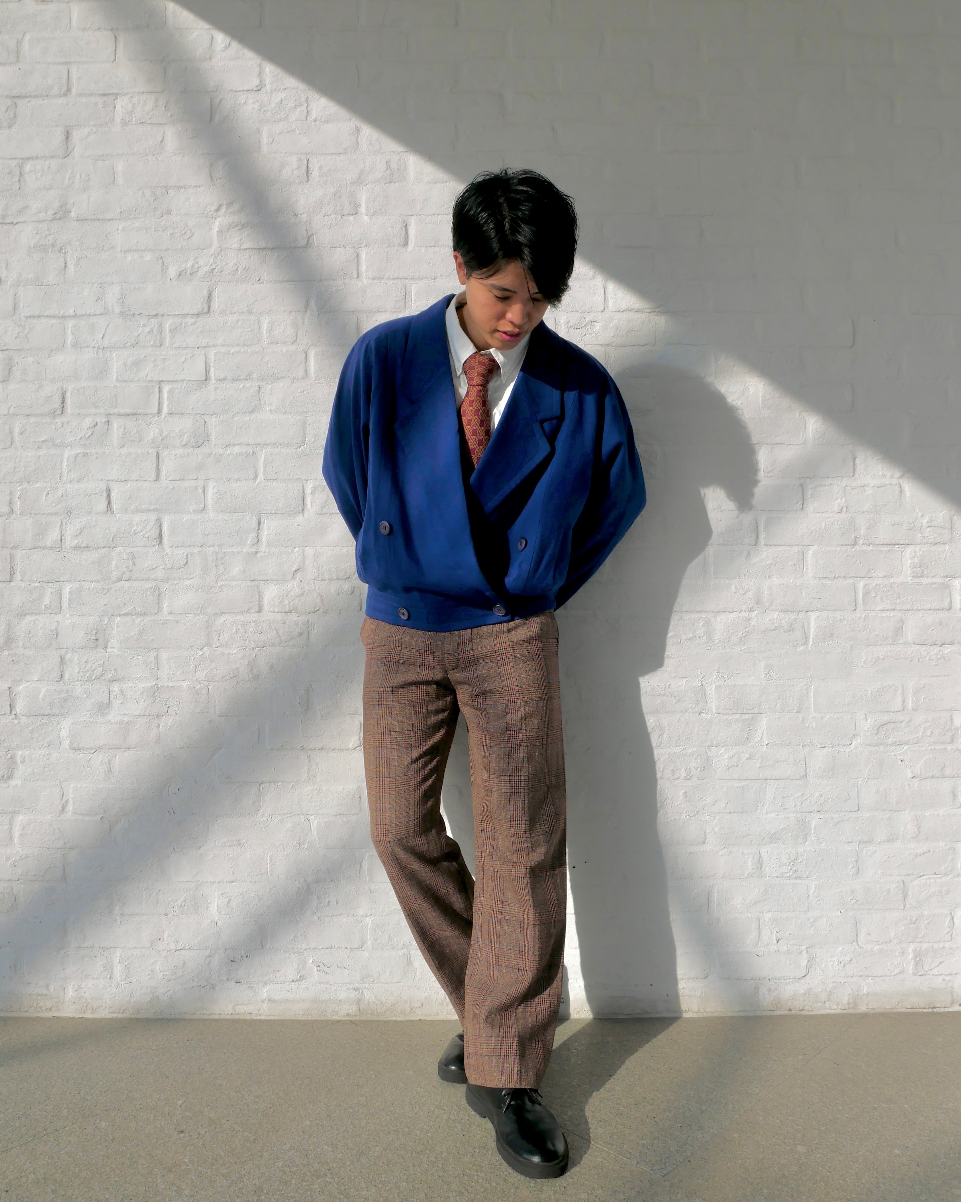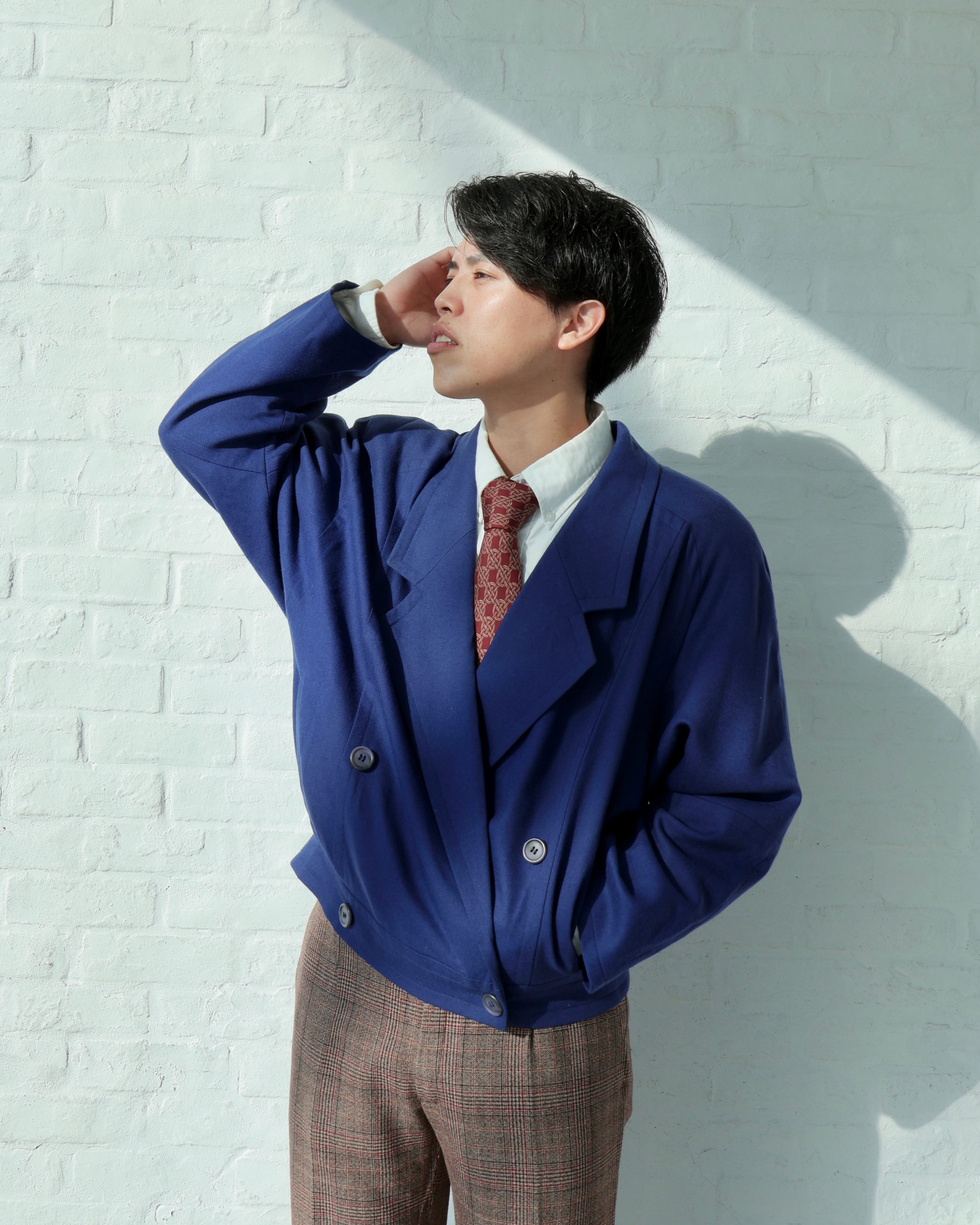 ショート丈ダブルジャケットは、希少な西ドイツ製で鮮やかなロイヤルブルーが目を惹く主役級アイテム。