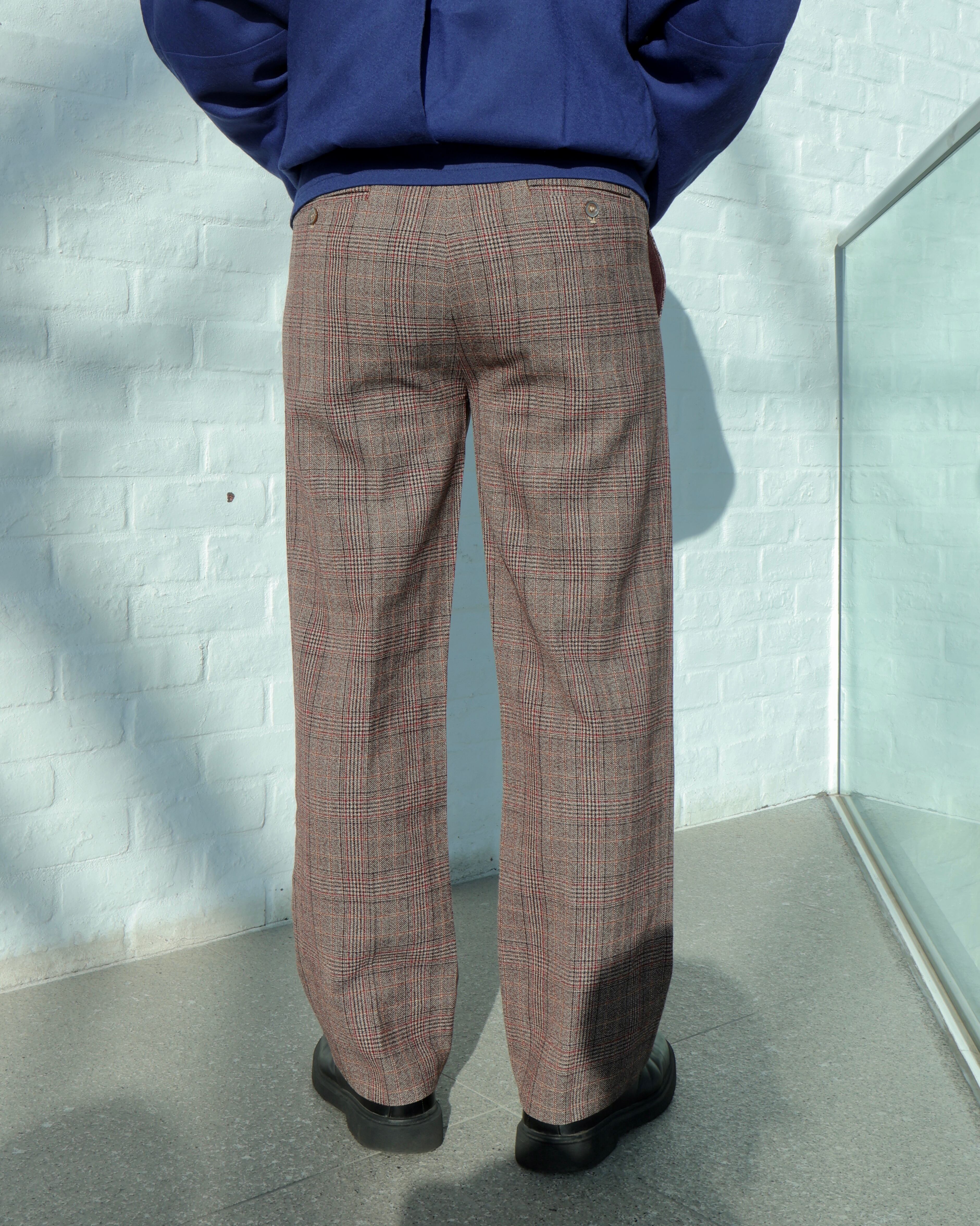 ブラウンをベースに、ブラックとレッドを織り交ぜたチェック柄がクラシカルな雰囲気を演出。落ち着きがありながら、さりげない赤のアクセントがスタイリングに深みをプラスします。