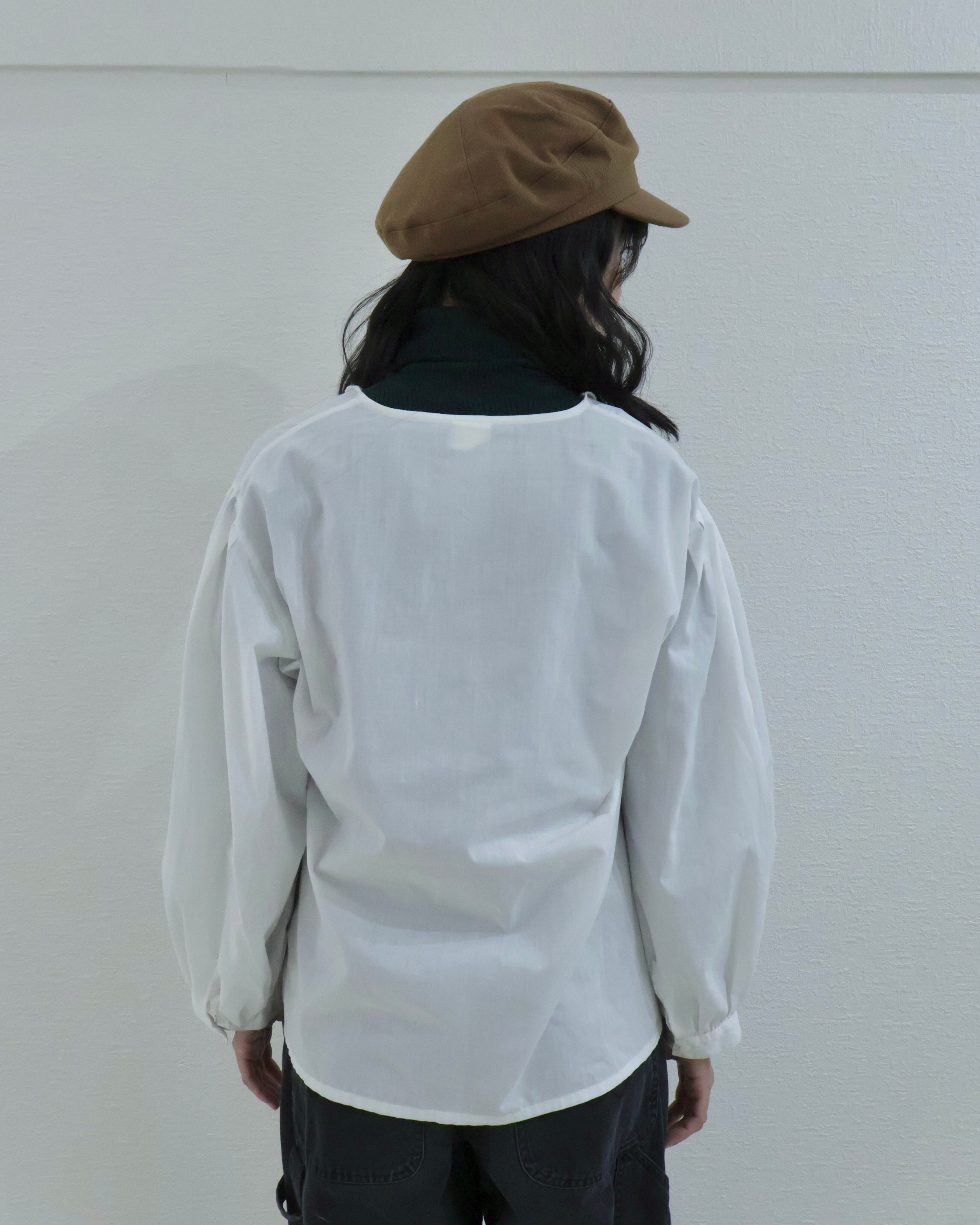 袖は肩から袖先にかけて緩やかに絞られており、丸みのあるふんわりとしたシルエットに。