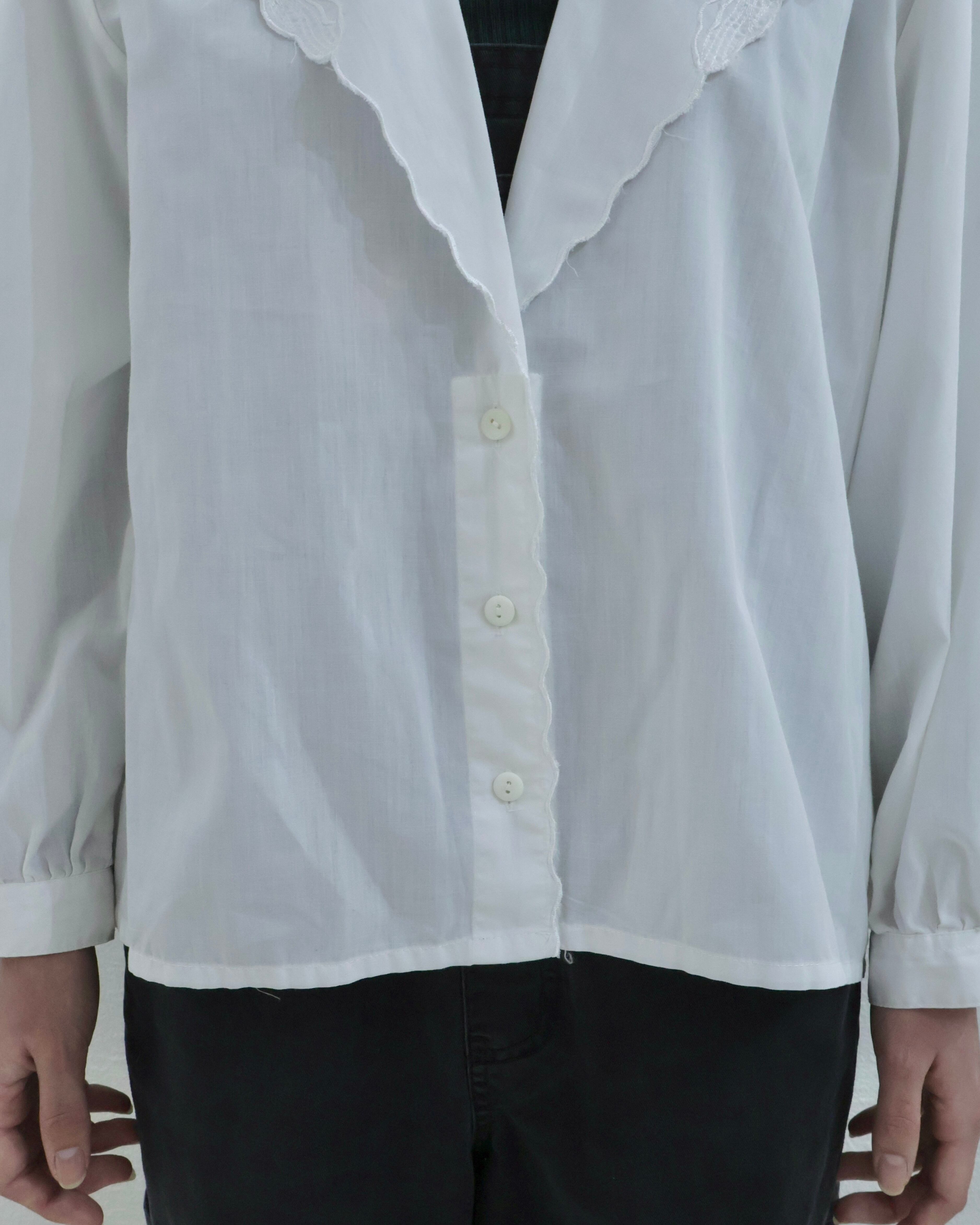 レースブラウスは、シンプルながらもシルエットにしっかりと個性を感じる、一味違ったブラウス。
