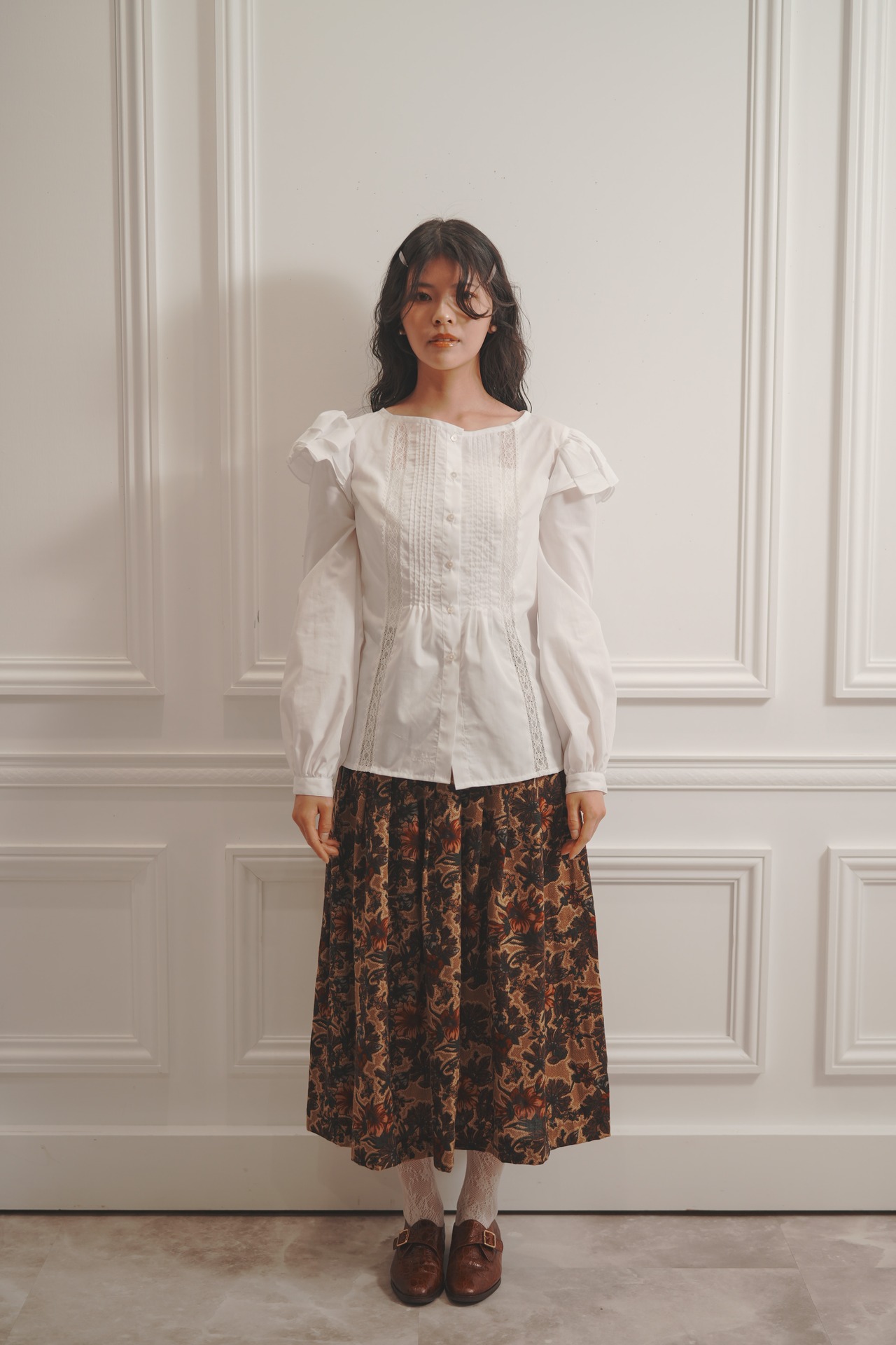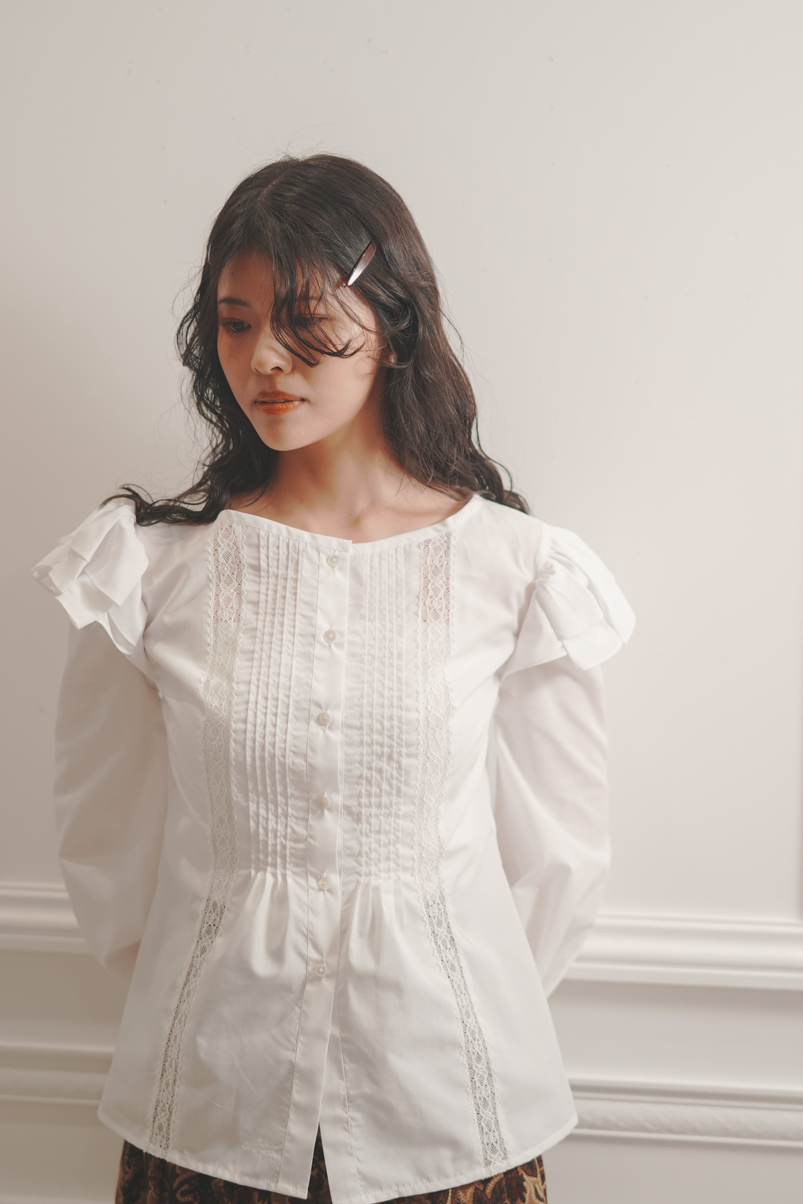 アンティークブラウスのディテールを基調に、