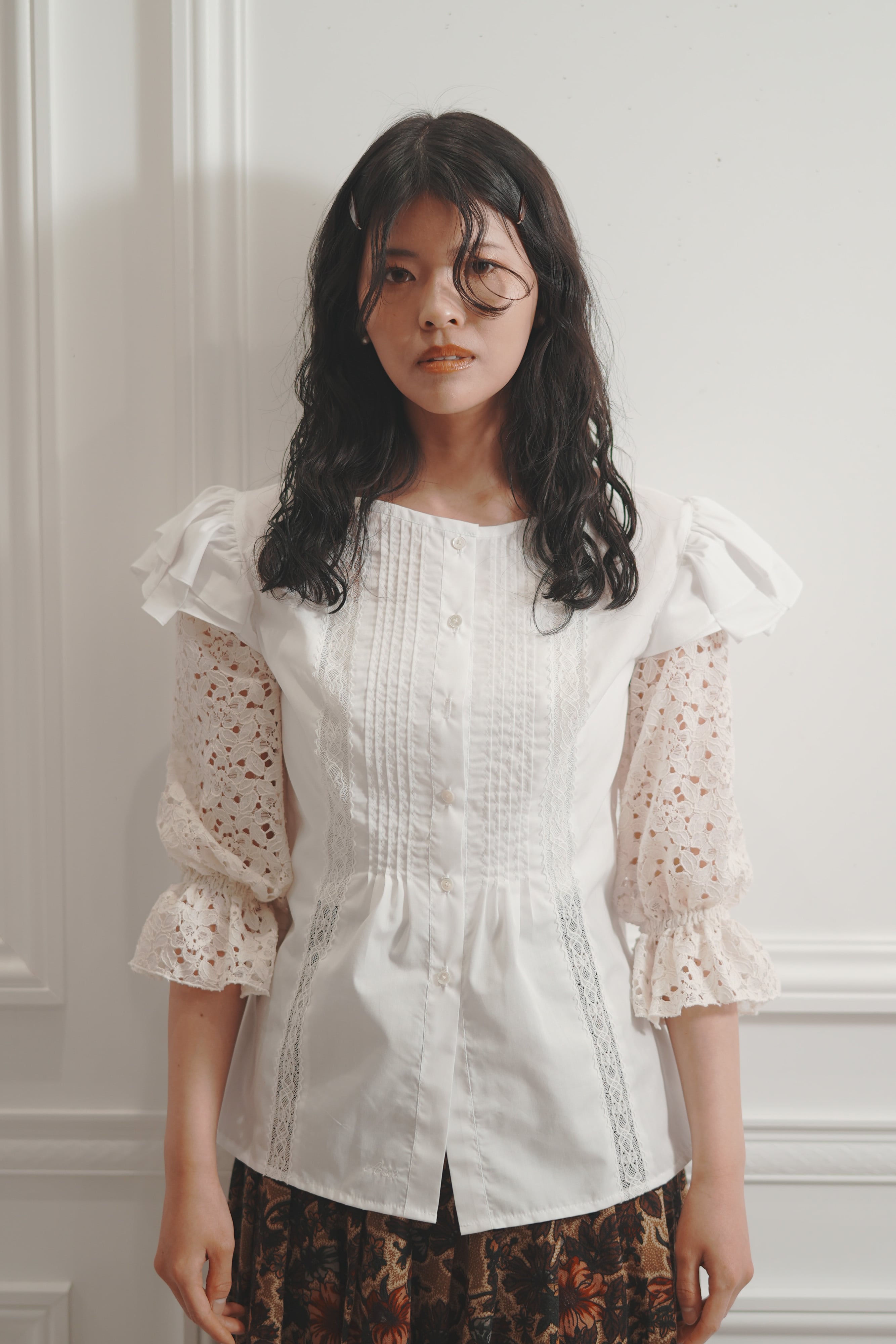 (モデル着用:M モデル身長:【A’sis Original】Antique-style blouse ♡white/165cm)