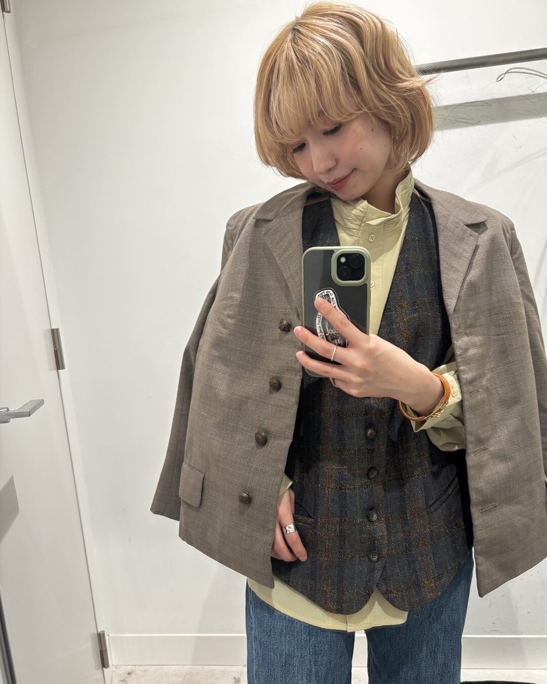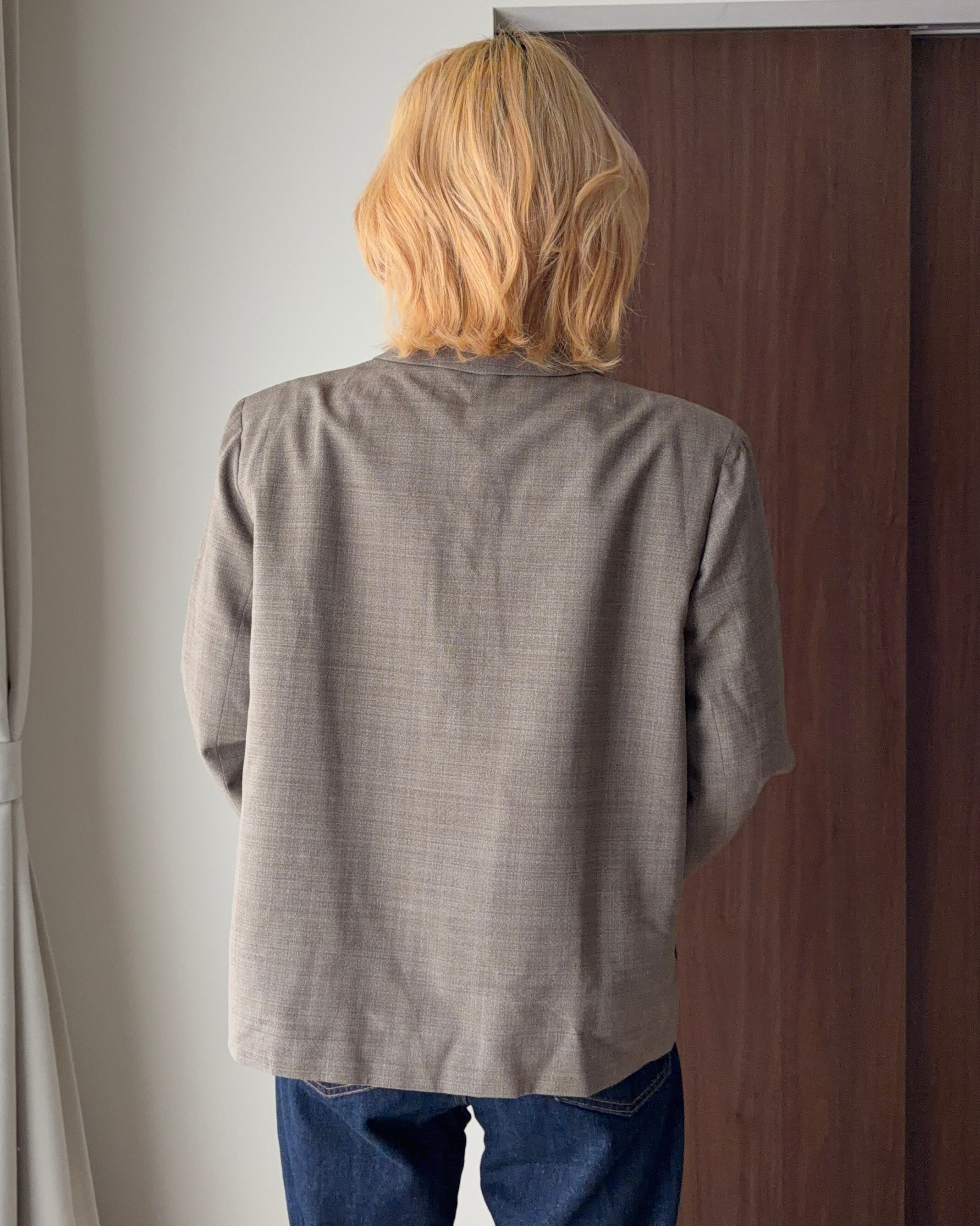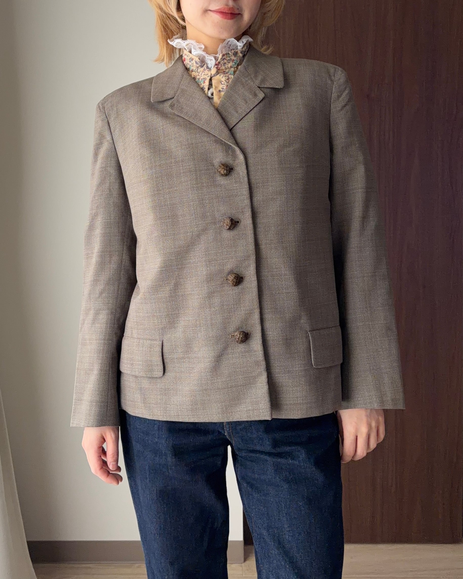 遠目にはシンプル、近くで見ると表情がある——そんな“大人の余裕”を感じさせる一着です。