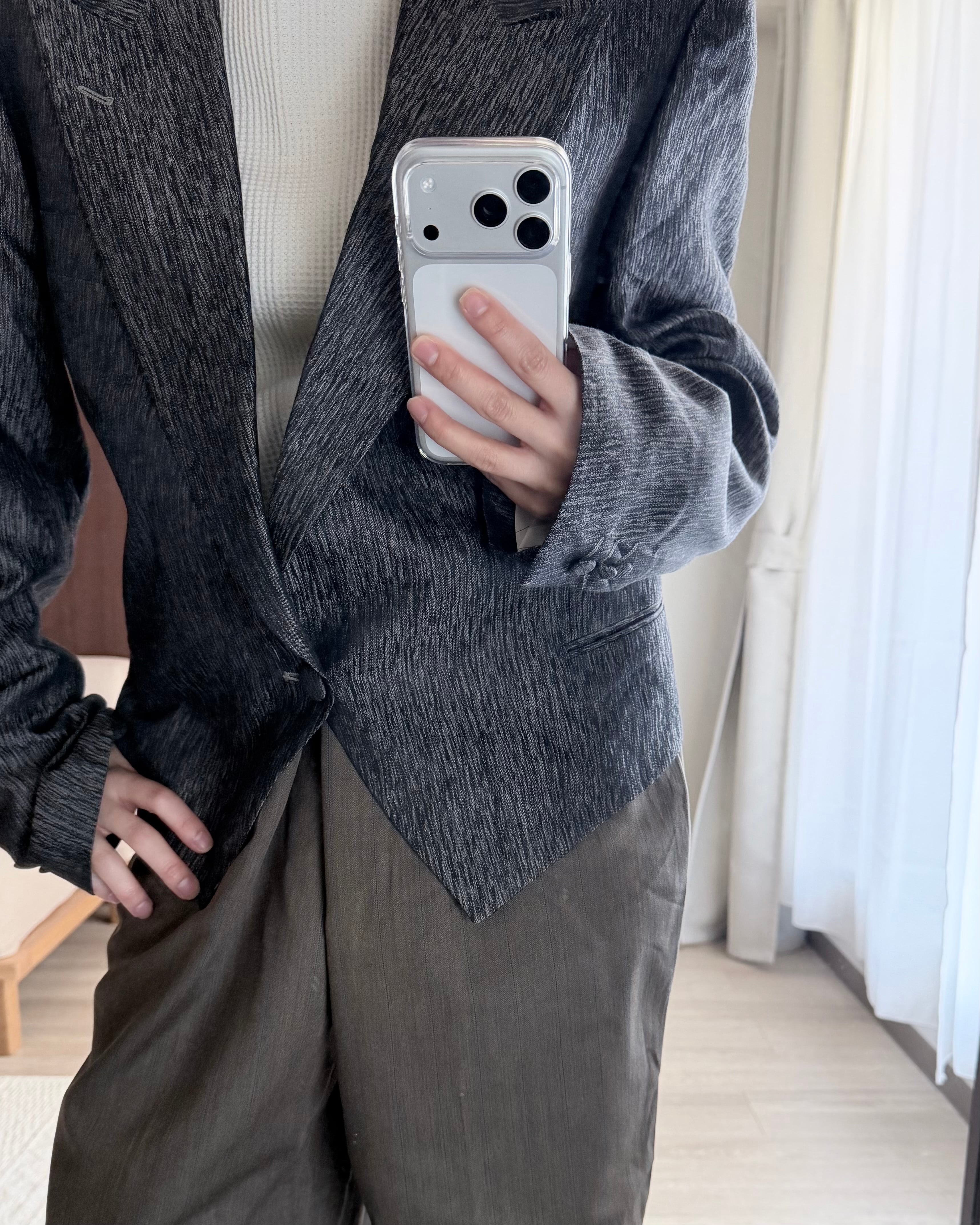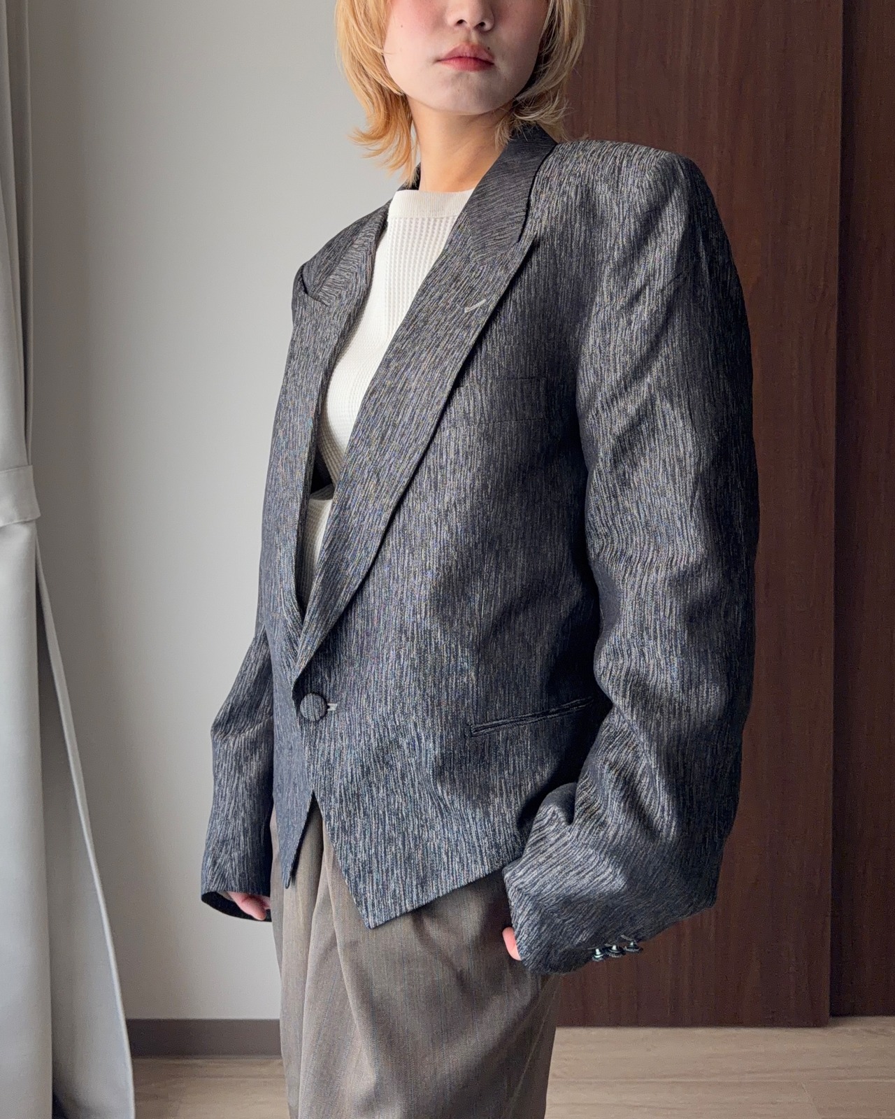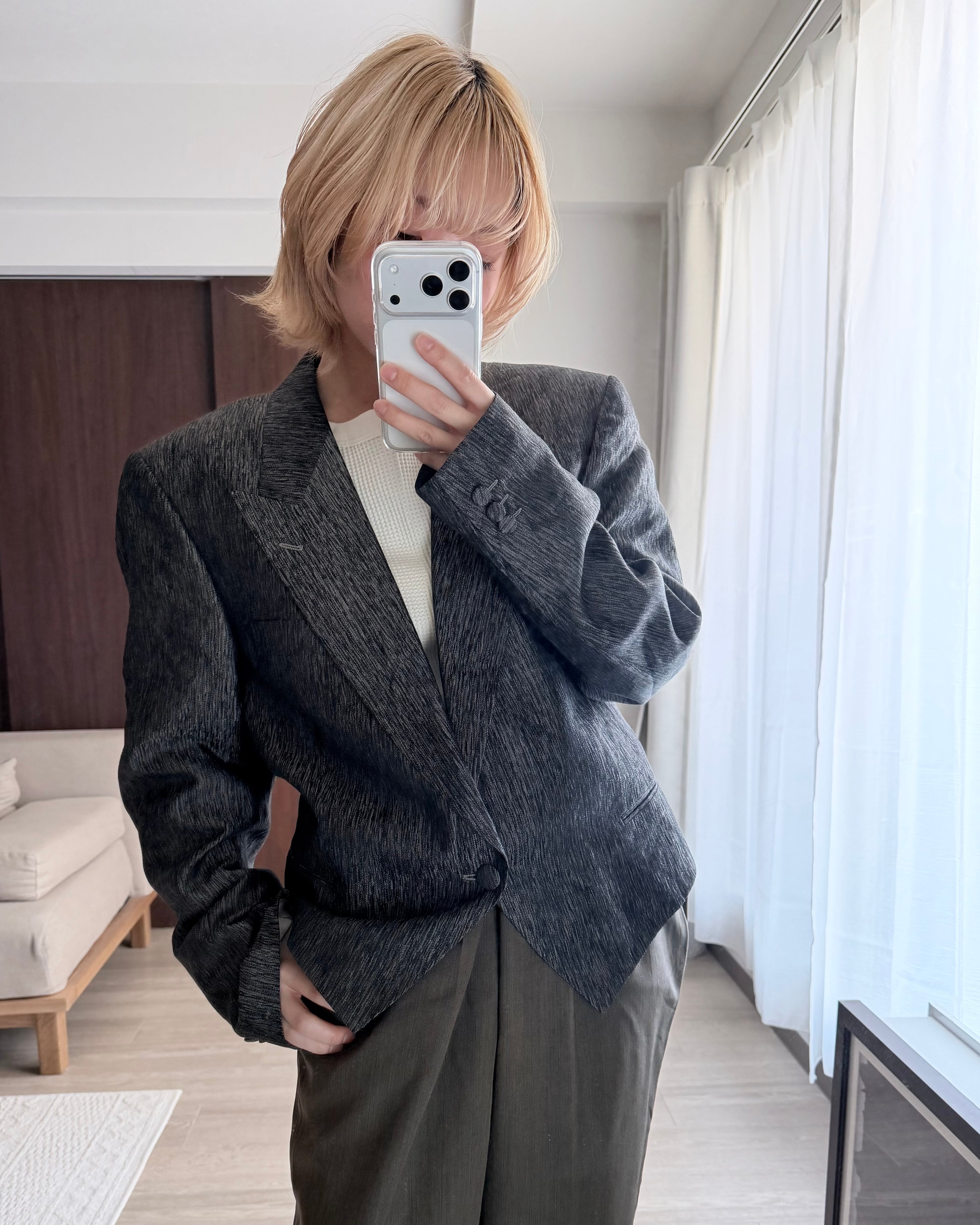 上品で、少し特別。そんな装いを楽しみたい方にこそ手に取ってほしい、存在感のあるジャケットです。