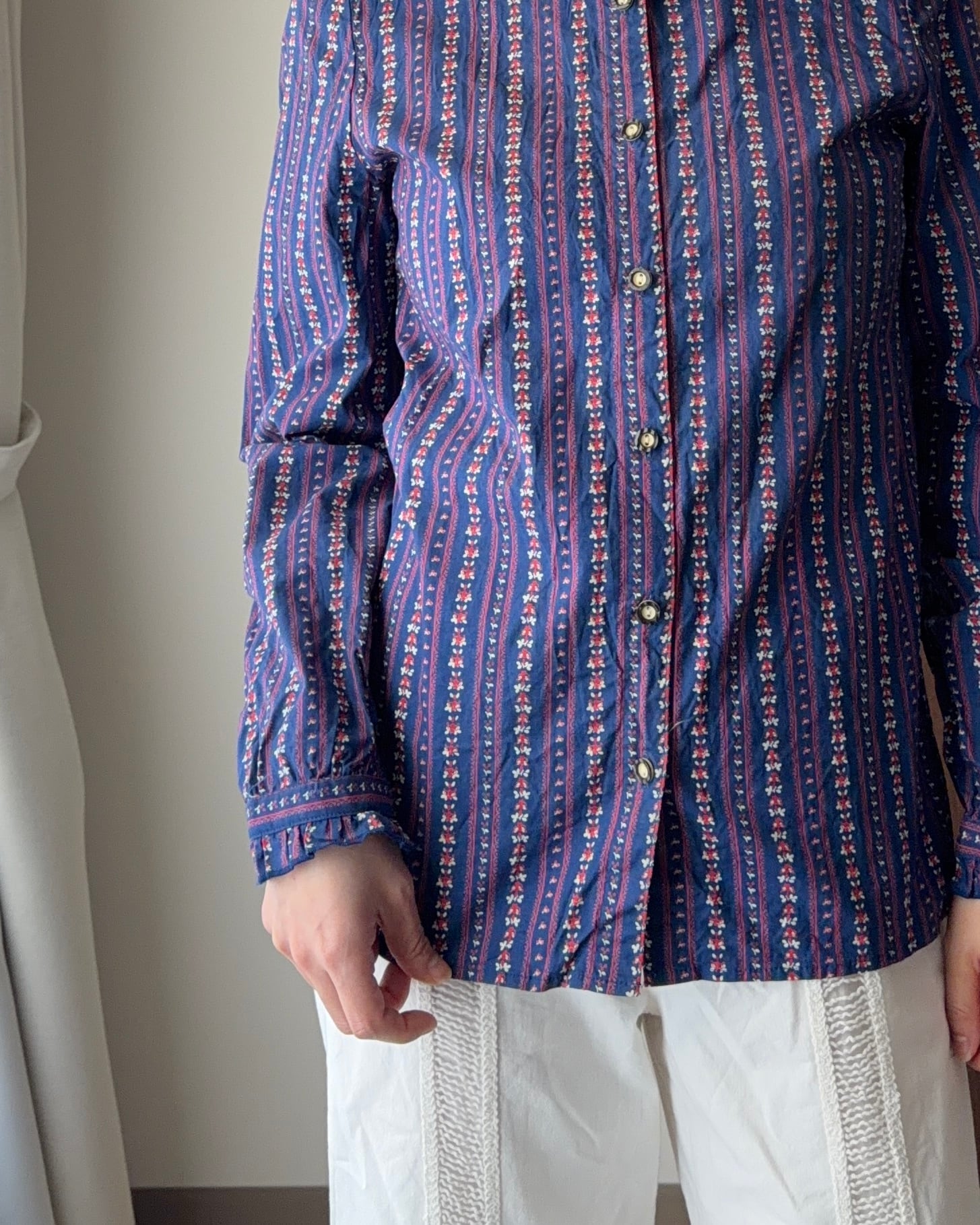 小花柄チロリアンブラウス / ハイネック フリル ヨーロッパ古着 euro vintage