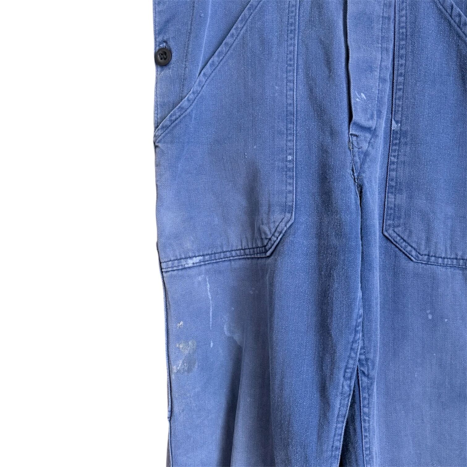 70年代頃のアイテムならではの、程よく褪せたフレンチブルーのようなカラーが魅力で、ワークウェアでありながらも落ち着いた雰囲気を演出してくれます。