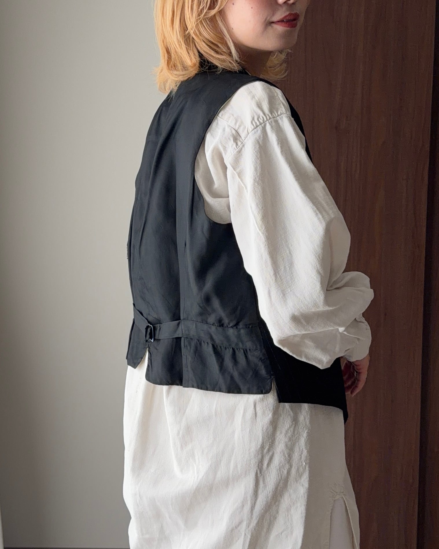 ボーダージレ/ ベスト ストライプ ブラック ヨーロッパ古着 euro vintage