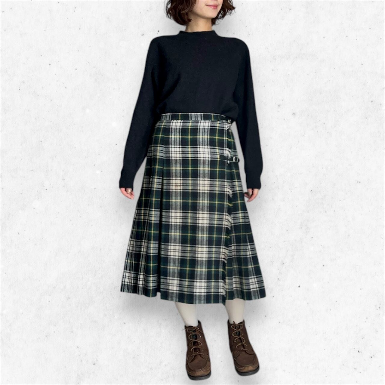 スコットランドの伝統的なタータンチェック柄を使用した巻きスカート。